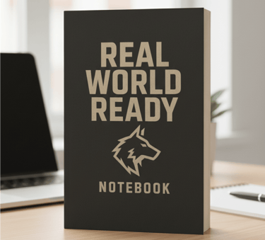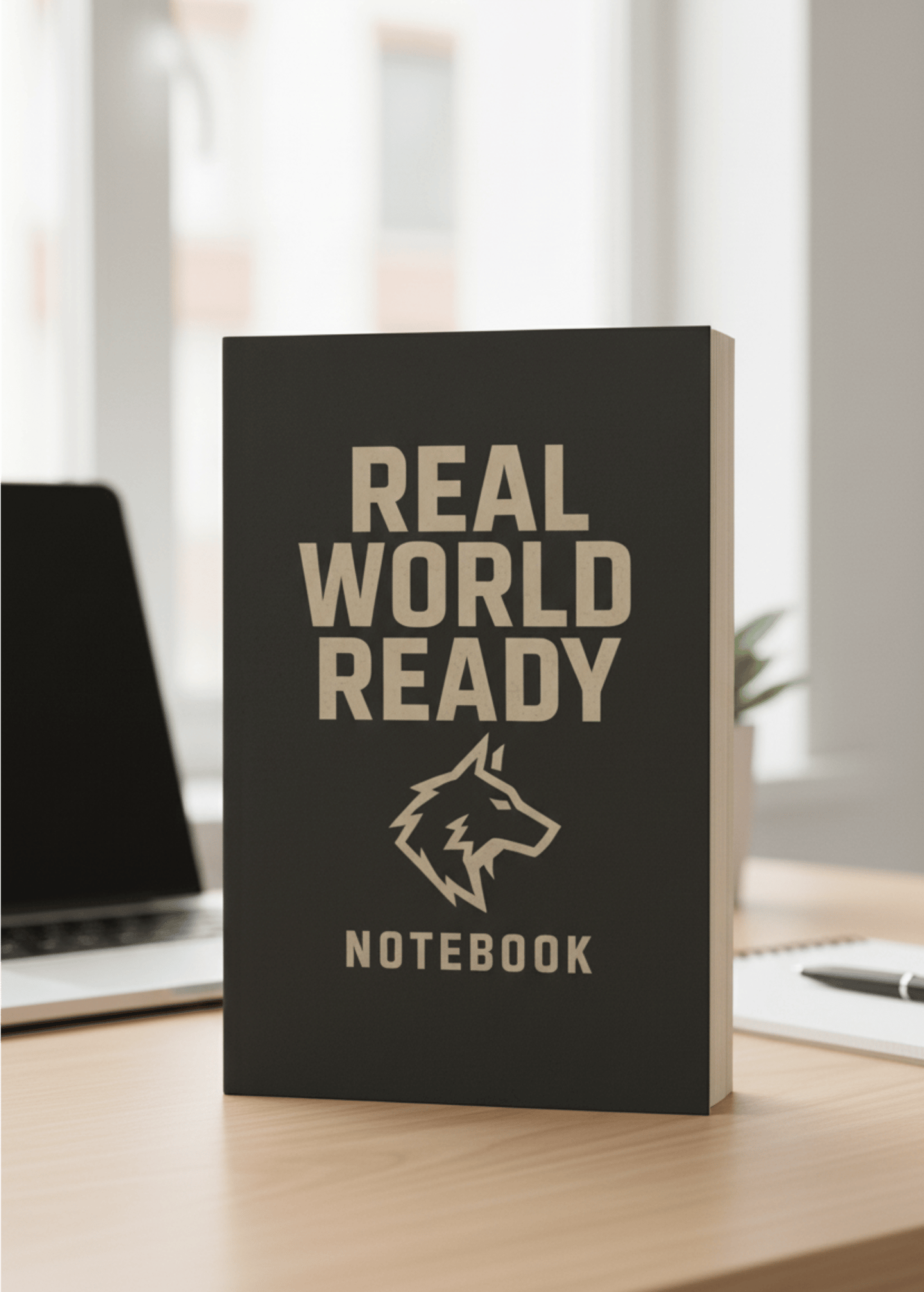The Real World Ready Notebook is your personal space to plan, reflect, and take charge of your transition. Designed for service members and veterans navigating civilian life, this notebook gives you structured pages for jotting down goals, tracking progress, and recording lessons learned. It’s more than blank pages—it’s a tool to help you stay focused and ready for what comes next.